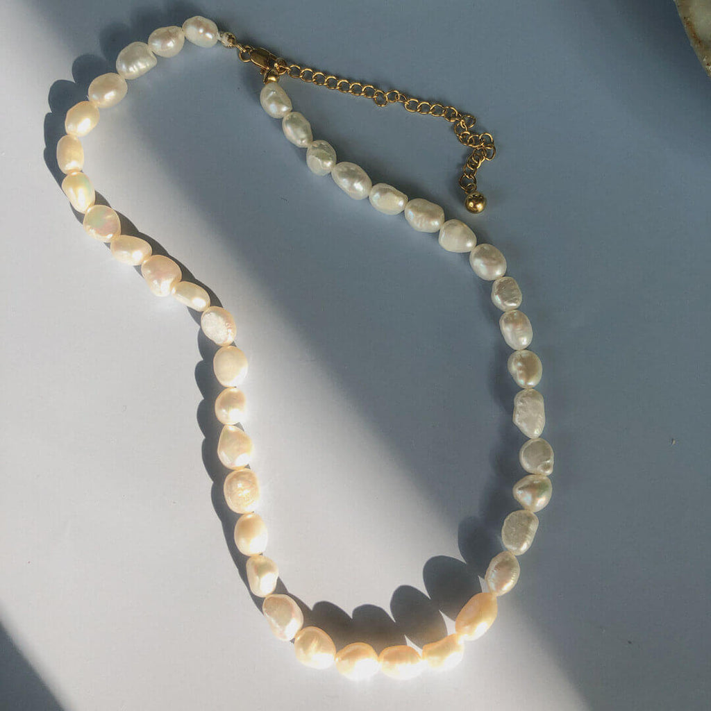 Sophia baroque pearl choker features a cultured freshwater pearl chain and a sleek flower lock with a minimal design. Wearing this pearl flower choker with a layered chunky necklace, a pair of mismatched earrings, and your favorite crop jeans. You are ready to rock! A kind reminder: each pearl is unique, its color and shape may vary.