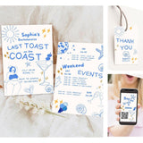 Whether you're planning a Last Toast on the Coast, a Coastal Grandma soiree, or a laid-back Beach Bachelorette, our customizable Canva template has got you covered and make the bride's last toast to remember!