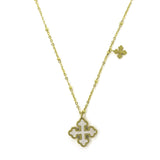 This elegant cross necklace is crafted in 316L surgical stainless steel with 14k gold plated layer, together with a stunning Mother of Pearl Cross Pendant and a small lovely cross charm.