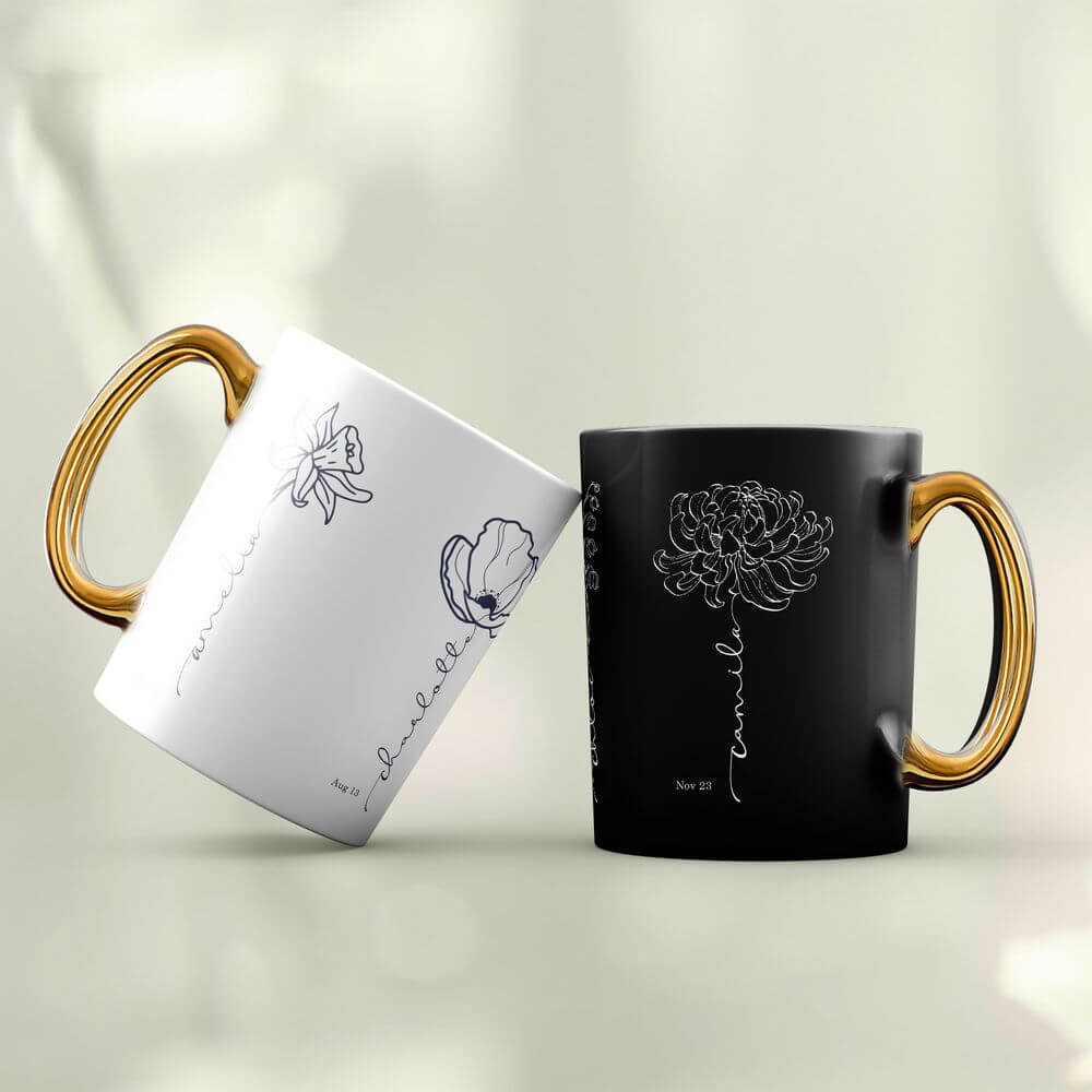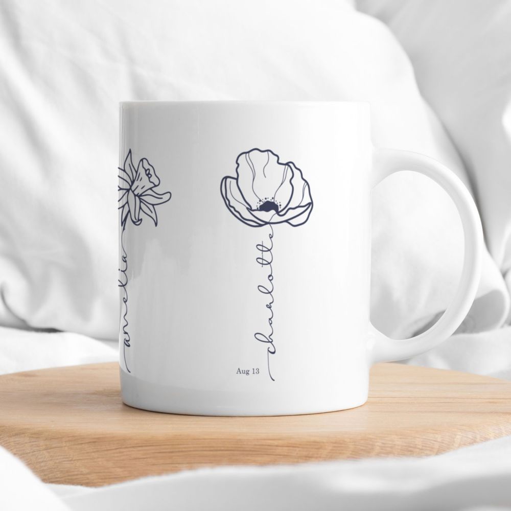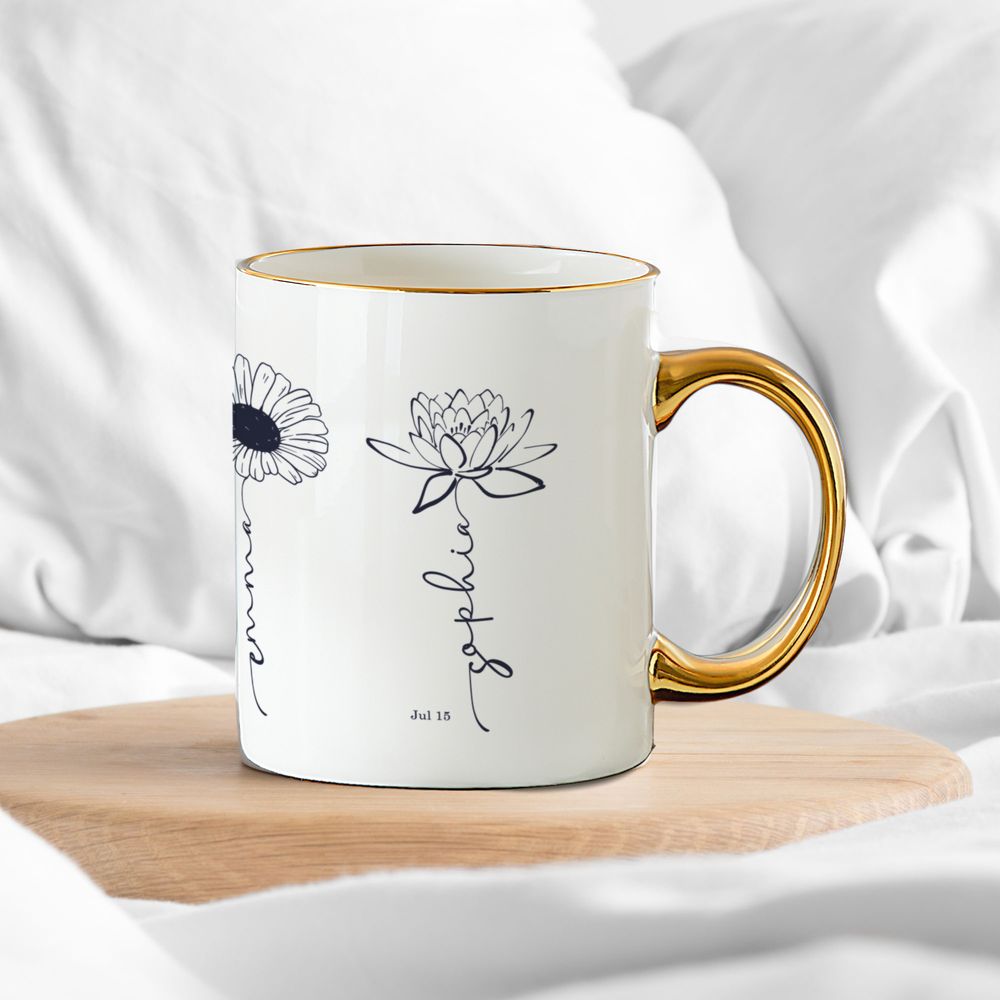 Whether enjoying a cup of coffee in the morning or tea in the evening, this exquisite cup will serve as a constant reminder of your loved one's beautiful birthday flower, making for a thoughtful and meaningful gift that is sure to leave an indelible impression. Its elegant design and superb craftsmanship make it the perfect addition to any modern and stylish home, adding a touch of sophistication to every sip. Show your family how special they are with this personalized coffee cup – a gift that truly keeps on giving.