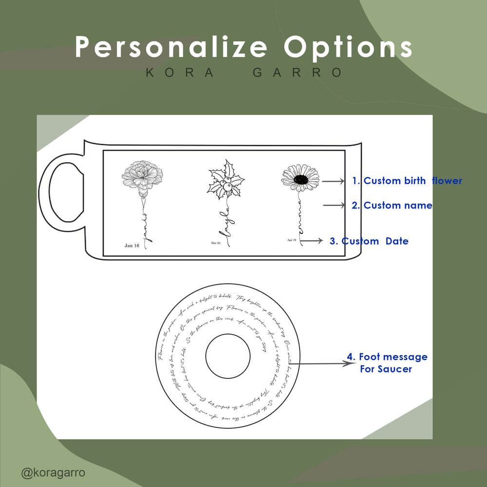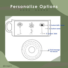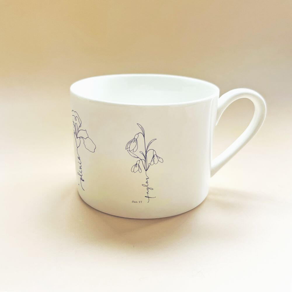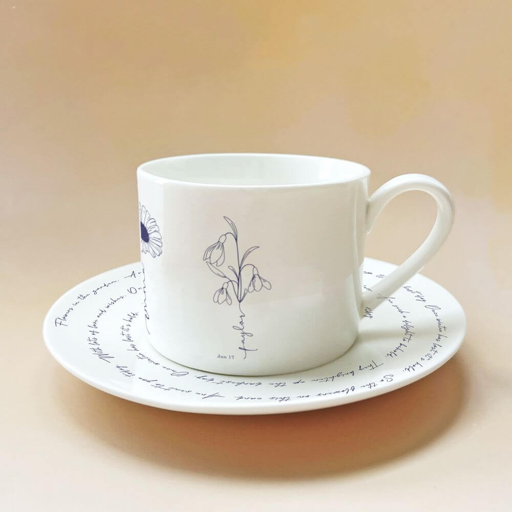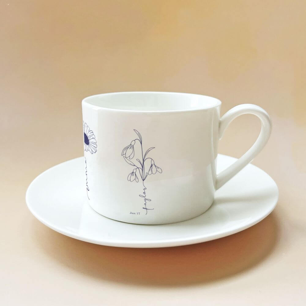 Our captivating January Birth Flower Tea Cup and Saucer Set - the perfect way to celebrate a special someone's birthday in style. The design features delicate January birth flower, custom name stem, with custom text exudes an aura of charm and sophistication.
