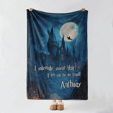 Our Custom Wizard School Throw Blanket, featuring iconic locations and by adding your favorite quote or even your name to make your magical adventures begin! This enchanting throw showcases key places like magic Castle, Diagon Alley, and a magic book with a wise owl, making it the perfect gift for any Potterhead, whether it's for a birthday, a magic school-themed party, or even as a magical New Year’s gift!
