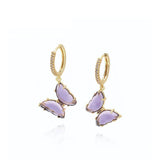 Butterflies, one of the most loved creatures, are the beautiful symbol of rebirth, transformation, and hope. Dipped in a thick 18k fine gold layer, the cute earrings adorn with sparkling lab-made lavender crystal glass in a butterfly shape. Our lovely Lilac butterfly huggie hoops are suitable for wearing with everyday outfits or as a formal accessory; keep them as an addition to your collection or give them as a gift to someone special.