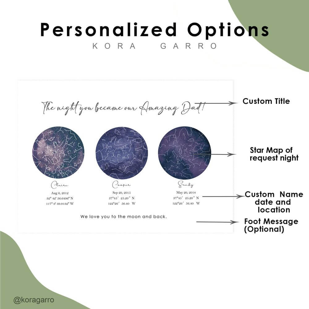 Feature with the starry constellations that adorned the night sky when a precious bundle of joy - kids entered this world. And add a touch of personalization, message, names, and location specific to your family which allow you to infuse your memories into every page of the book, connecting the dots between those cherished moments and the celestial wonders that shone overhead.