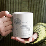 This custom-made Birth flower coffee Mug features with Aster flower, custom name stem, with custom text exudes an aura of charm and sophistication. As the perfect birthday gift that showcases your loved one in September.